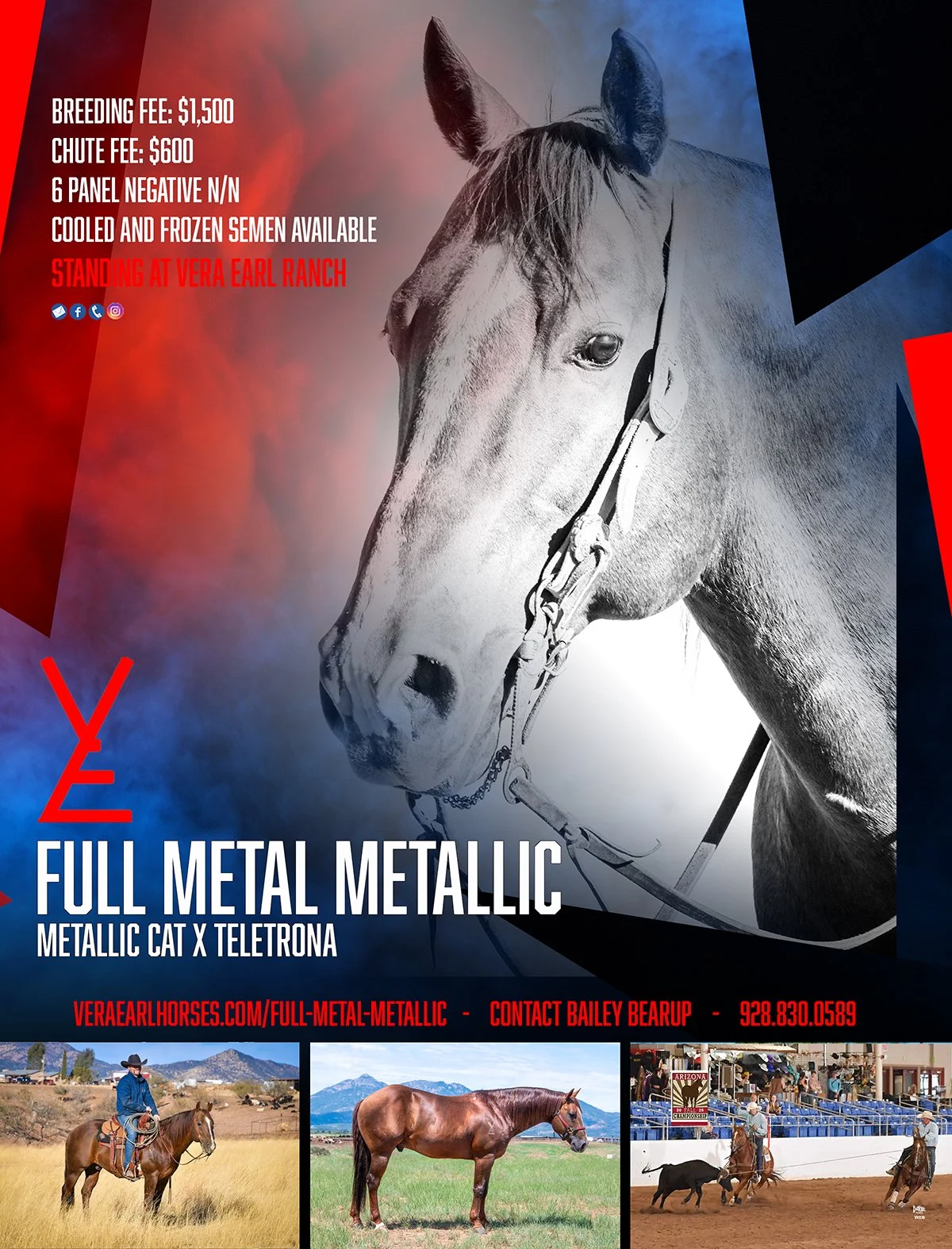 Full Metal Metallic is an own son of EquiStat Elite $63 Million Sire Metallic Cat. Metallic Cat is also the 2023 EquiStat top rope horse sire. Full Metal Metallic is currently being shown in the AQHA roping and also has earnings in reined cow horse and cutting.